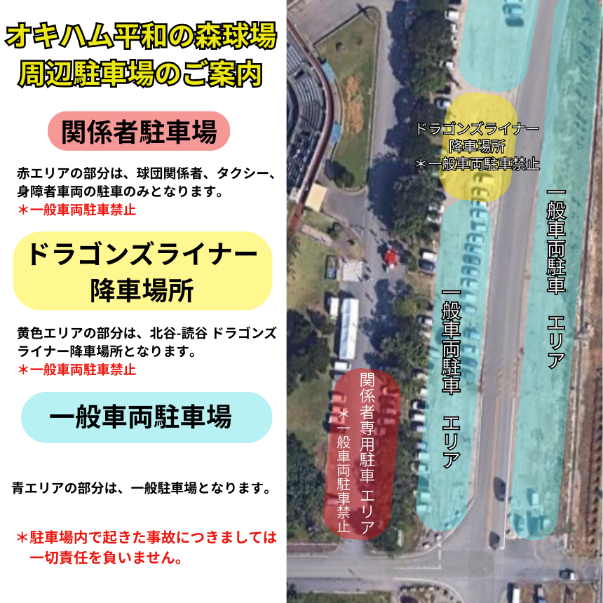 野球キャンプ開催期間中は、球場周辺の駐車場利用方法が通常と異なります。